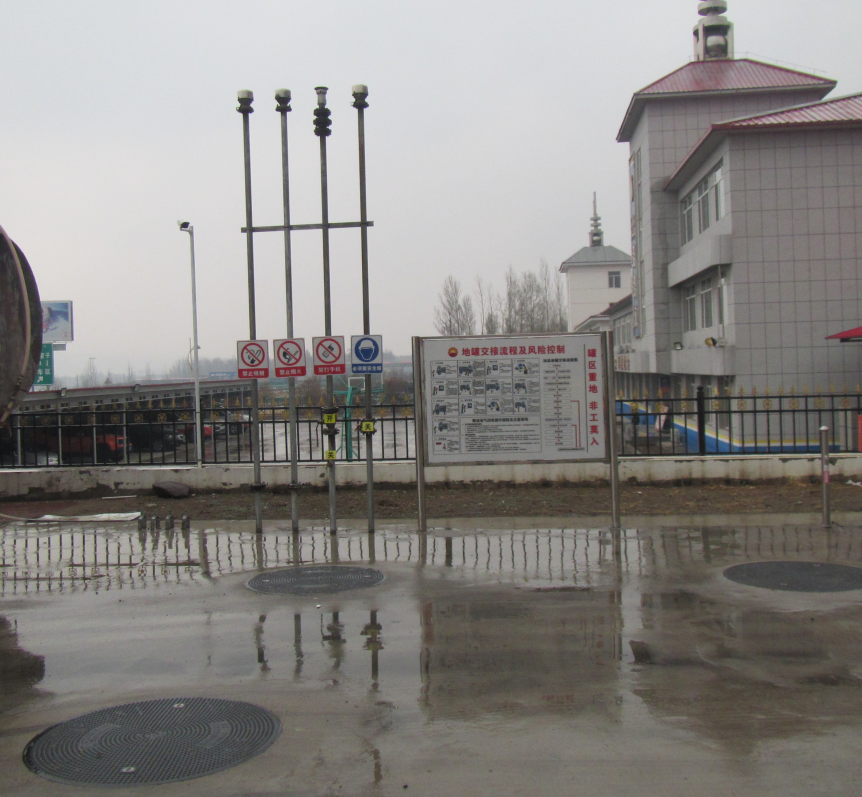 zhongguoshiyoutianranqigufenyouxiangongsineimengguchifengxiaoshoufengongsikalaqinqijinshanshoufeizhanjiayouzhanweiyuchifengshikalaqinqiwangyefuzhensishijiazicun。jiayouzhanzhandimianji3434.54m2,站外北側為赤承高速公路,西側與高速公路服務區相鄰,東側為原錦山收費站辦公樓(二類保護物),南側為林地。該站現有加油島3座,加油機3台(其中汽油加油機1台、柴油加油機1台、汽/柴油加油機1台)。埋地油罐區一處,設有4個承重罐,其中汽油儲罐2個,單罐容積均為30m3;柴油儲罐2個,單罐容積均為30m3,儲罐區總容積為90m3(柴油儲罐容積折半計入)。根據《汽車加油加氣站設計與施工規範》(GB50156-2012,2014年版)的規定,加油站屬於三級站。加油站建有站房一座,內設便利店、辦公室、值班室、用電廚房、餐廳、配電間、燃煤鍋爐間、衛生間;站房西側建有輔助用房一座,內設發電間、儲物間。加油站現有員工8名,其中主要負責人(站長)1人,專職安全管理人員1人。主要負責人(站長)及安全管理人員均取得了原內蒙古自治區安全生產監督管理局頒發的安全生產知識和管理能力考核合格證,加油員6人,均經安全教育培訓合格後上崗。 |