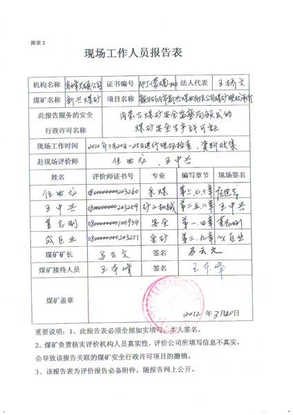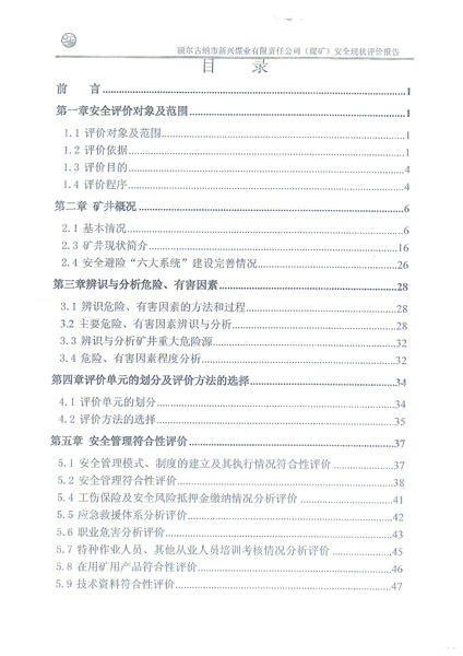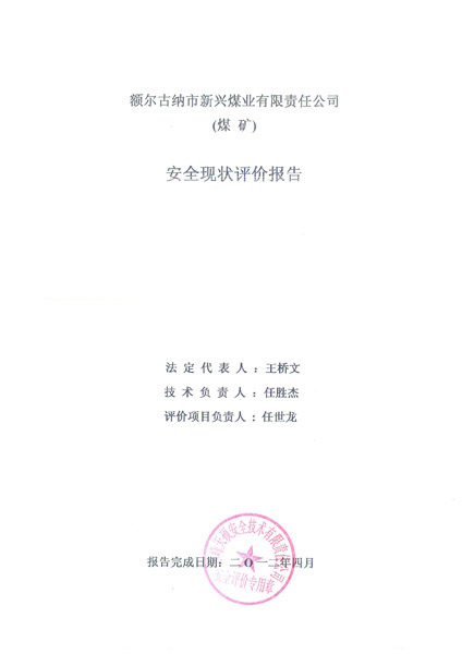 安全評價項目名稱:額爾古納市新興煤業有限責任公司