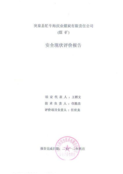 安全評價項目名稱:突泉縣牤牛海慶業煤炭有限責任公司慶業煤礦