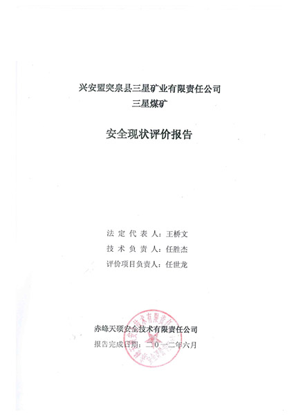 安全評價項目名稱:興安盟突泉縣三星礦業有限責任公司三星煤礦