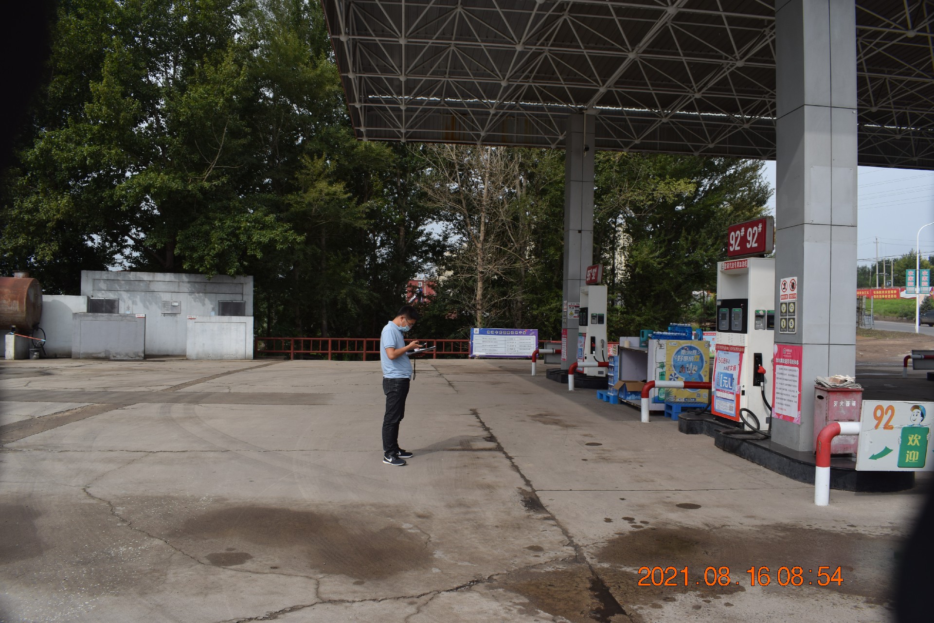 | 中國石化銷售股份有限公司內蒙古赤峰石油分公司元寶山加油站位於赤峰市元寶山區元寶山鎮平元公路南側。加油站占地麵積2280m2,站外南側、西側均為居民住宅(三類民用建築),東側為賓館(三類民用建築)和汽車修理門市(三類民用建築、明火地點),北側為平元公路(三級路),交通十分便利。該加油站現有埋地儲罐區一處,設雙層儲罐6個,其中汽油儲罐4個,單罐容積均為30m3;柴油儲罐2個,單罐容積均為30m3,儲罐區總容積為150m3(柴油儲罐容積折半計入),根據《汽車加油加氣加氫站技術標準》(GB50156-2021)的規定,該加油站屬於二級站。加油區設罩棚一座,加油機4台(其中汽油加油機3台、柴油加油機1台)。加油站建有站房一座,內設營業室、辦公室、宿舍、餐廳、用電廚房、雜物間、配電室、發電間、庫房及車棚。站區西側建有廁所一座。加油站現有員工8名,其中主要負責人(站長)1人,專職安全管理人員1人。主要負責人(站長)和專職安全管理人員均取得由內蒙古自治區應急管理廳頒發的安全生產知識和管理能力考核合格證,其他從業人員6人,均經加油站安全教育培訓合格後上崗。 | |||||||||||
