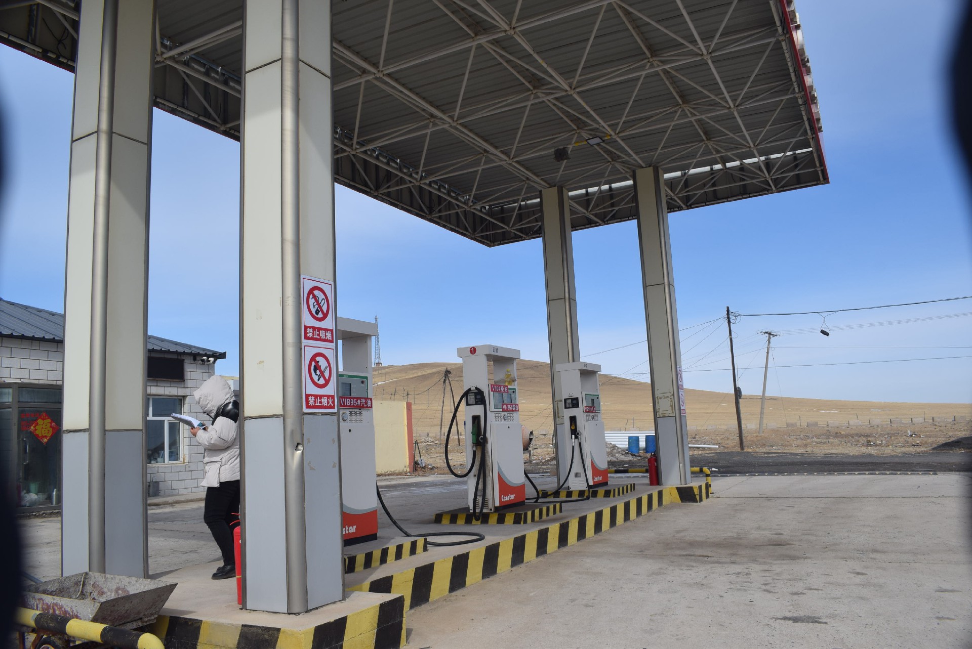 | 克什克騰旗鋆泓成品油銷售有限責任公司位於赤峰市克什克騰旗巴彥查幹蘇木巴彥高勒嘎查68號,公司占地麵積1600m2。該公司取得了克什克騰旗巴彥查幹蘇木人民政府出具的《證明》,證明該公司的土地和房屋的使用權歸克什克騰旗鋆泓成品油銷售有限責任公司所有。該公司站外東側、北側均為空地,西側為克什克騰旗巴彥查幹蘇木巴彥高勒小學(一類保護物),南側為鄉村公路(三級路)。 該公司現有加油島3座,加油機3台(其中汽油加油機2台、柴油加油機1台)。埋地油罐區一處,其中汽油儲罐2個,單罐容積均為30m3;柴油儲罐2個,單罐容積均為30m3。儲罐均為內層鋼、外層玻璃纖維增強塑料雙層儲罐。儲罐區總容積為90m3(柴油儲罐容積折半計入)。根據《汽車加油加氣加氫站技術標準》(GB50156-2021)的規定,加油站屬於三級站。站內建有站房一座,內設營業室、辦公室、值班室、配電間、發電間、燃氣廚房、燃煤鍋爐間、煤倉、雜物間等。站區西北角建有廁所一座,站房東側建有儲物間一座。加油站現有員工8名,其中主要負責人(站長)1人,專職安全管理人員1人。主要負責人(站長)和專職安全管理人員均取得了安全生產知識和管理能力考核合格證;其他從業人員6人,均經加油站內部安全教育培訓考核合格後上崗。 | |||||||||||