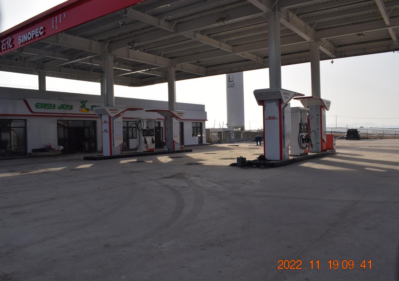 | 中國石化銷售股份有限公司內蒙古赤峰石油分公司陶海加油站易址遷建項目的遷建位置為原站址的1公裏範圍內,由G5511高速路西南遷建到東南側,新站址位於阿魯科爾沁旗賽罕塔拉蘇木查彬塔拉嘎查G5511高速輔路南側與查陶線交彙處,總投資1100萬元。 站內加油係統設置4個埋地承重儲油罐(均為鋼製臥式雙層儲油罐),其中單罐容積均為30m3的汽油雙層儲罐2個,單罐容積均為50m3的柴油雙層儲罐2個,油品儲罐區總容積為110m3(柴油儲罐容積折半計入),根據《汽車加油加氣加氫站技術標準》(GB50156-2021)的規定,該項目加油部分為二級站。加氣係統建有容積為60m3 的地上立式LNG儲罐1個,LNG潛液泵撬1台,LNG加氣機1台。根據《汽車加油加氣加氫站技術標準》(GB50156-2021)的規定,經計算為:V01/240+VLNG1/180≤1,因此該站屬於一級加油與LNG加氣合建站。加油站建有站房一座,內設便利店、辦公室、值班室、配電間、衛生間、淋浴間、空氣能間、備餐間、設備間、儲物間、餐廳及活動室等。 中國石化銷售股份有限公司內蒙古赤峰分公司陶海加油站現有員工8名,其中站長1人、安全管理人員1人,站長和安全管理人員均取得了安全生產知識和管理能力考核合格證;其他從業人員6人,均經加油站內部安全教育培訓考核合格後上崗。 | |||||||||